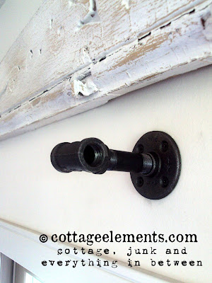 Your Unique curtain rod looks Fabulous ~ Love the Industrial with the Shabby Corbel Design.... Perfect Pairing!